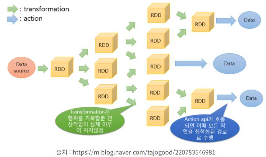 그렇기 때문에 특정 동작을 위해서는 기존 RDD를 변형한 새로운 RDD가 생성될 수 밖에 없다.