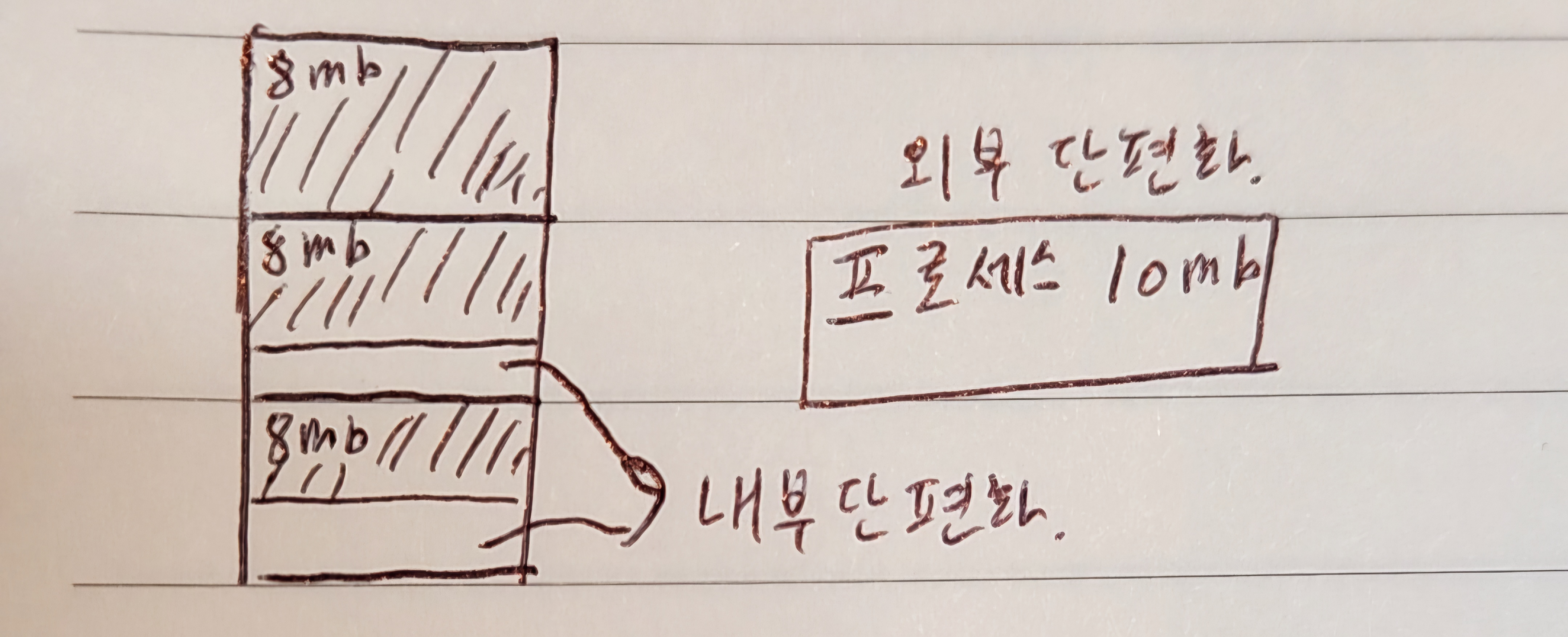 ex) 총 메모리 공간 24mb, 고정 분할 8mb 메모리에서의 단편화