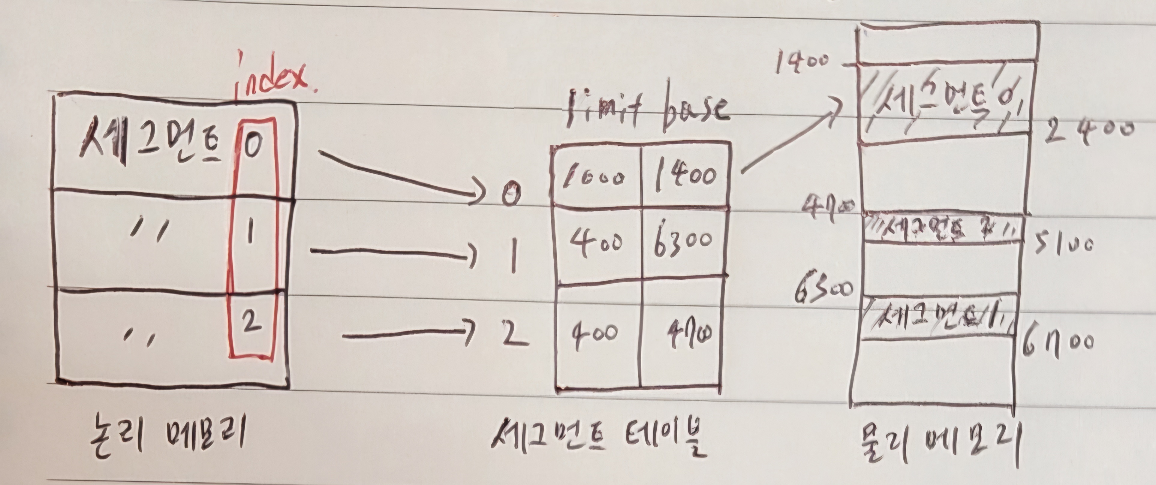 세그먼테이션 테이블을 사용해 세그먼트의 논리 주소를 물리주소로 매핑한다.