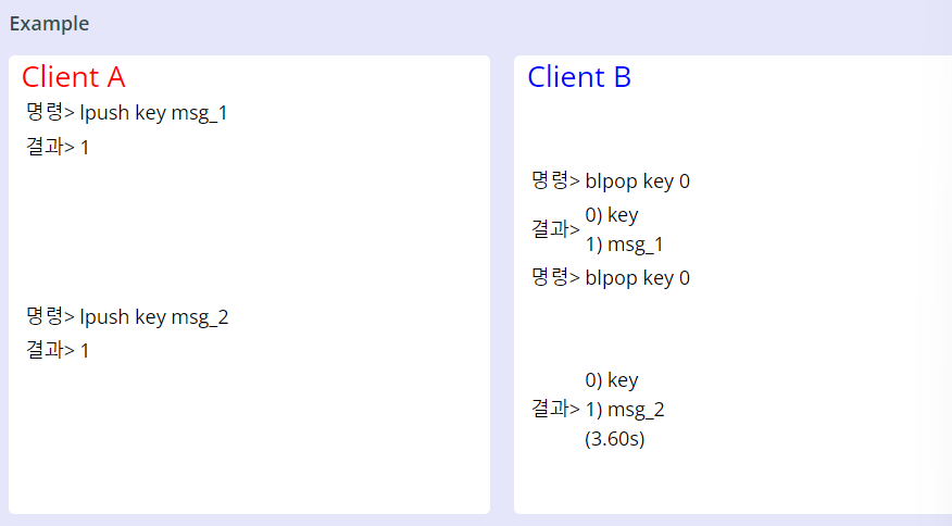 16. BLPOP key <timeout seconds> : 데이터가 있을명우는 LPOP과 같은 명령어. 없을 경우는 지정한 초만큼 대기 후 꺼내옴.