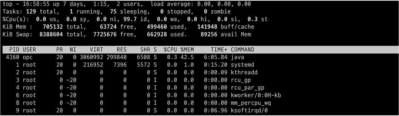 TOP 명령어top 명령어는 현재 OS의 상태를 나타내주는 CLI 어플리케이션입니다. 메모리 사용량, CPU 사용량 등을 나타내주며 top를 실행하는 동안에는 주기적인 업데이트로 실시간에 근접한 내용을 보여줍니다. 리눅스에서 top 명령어를 실행하면 아래와 깉이 노출됩니다. 위에는 전체의 요약이 있으며 아래에는 각 프로세스마다 구체적인 내용을 포함하고 있습니다.요약 영역요약 영역은 top에서 상단에 위치하고 있습니다. 이 요약영역은 전체 프로세스가 OS에 대해서 리소스를 어느정도 차지하고 있는지를 알려줍니다. 요약 영역에 나타나는 대표적인 값은 시간, 유저, 로드 에버리지(Load Average), 테스크(Tasks), CPU, 메모리(memory)로 아래의 이미지를 보시면 각 영역에 대해 나태내느 값이..
